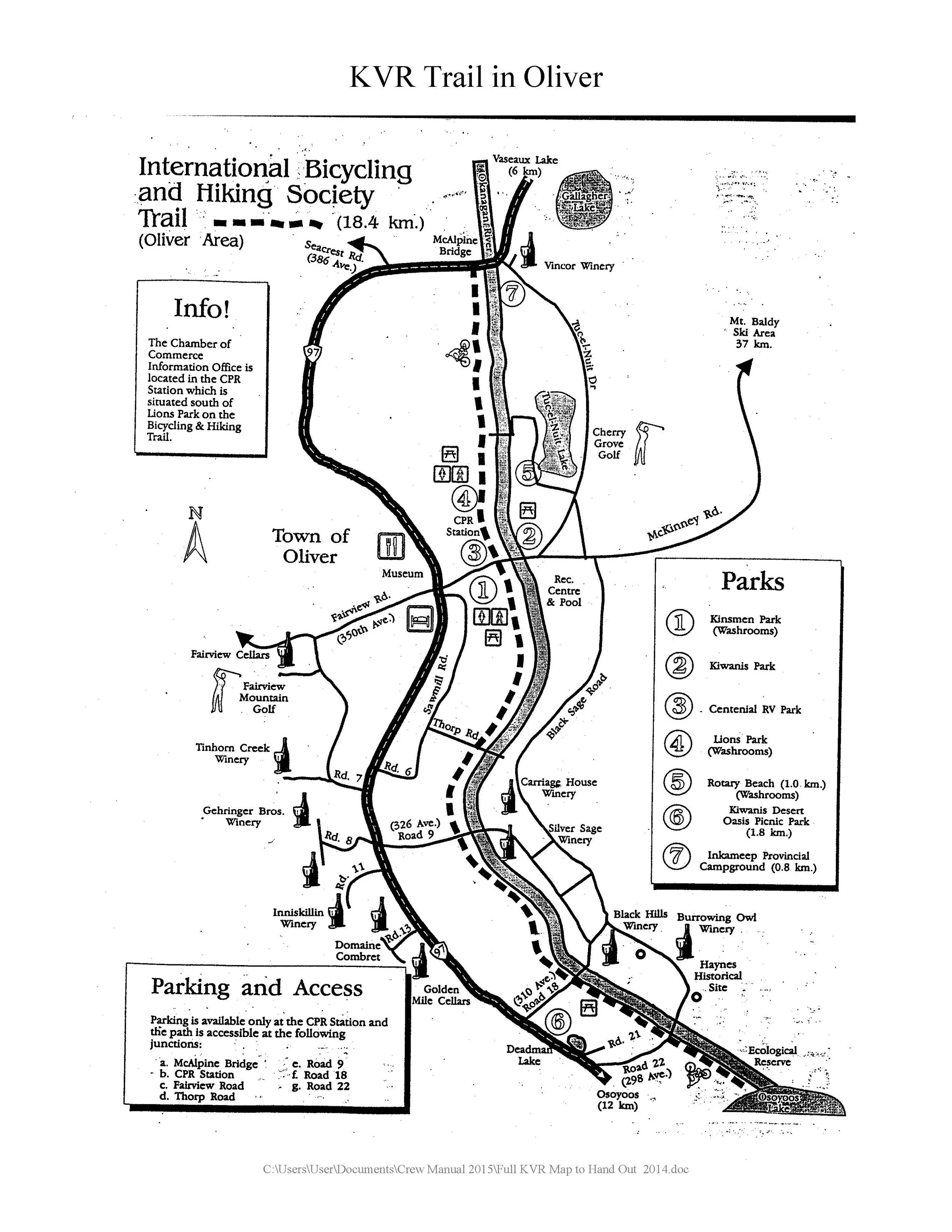 Printable map of the Kettle Valley Rail Trail in Oliver, BC