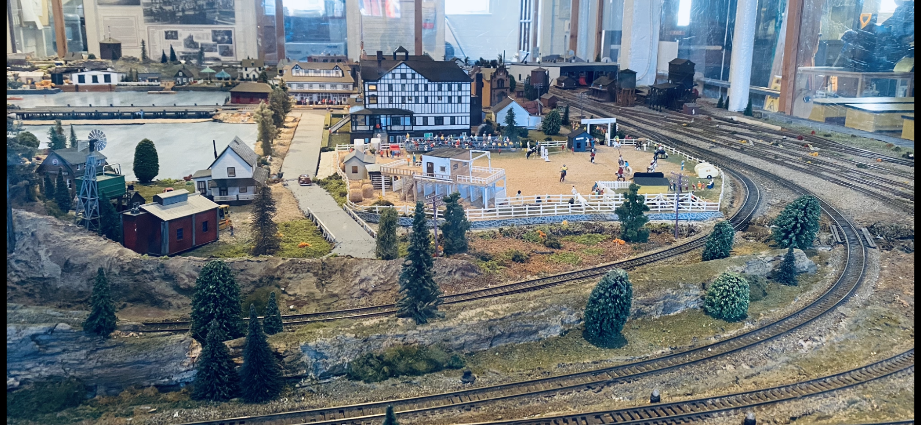 Steam was the mode of power and the model train shows steam at its finest. The HO steam locomotives pull consists of CPR rolling stock, loaded with the produce of the valley. Passengers wait for the train as it pulls into the station at Brookmere. Logging operations depict the harvest from our forests. Yards show the maintenance of locomotives as it took place in Penticton, and freight trains are made up on its sidings. The Trout Creek Canyon Bridge and the Myra Canyon trestles are represented, and you can view the trains as they travel over these magnificent structures.